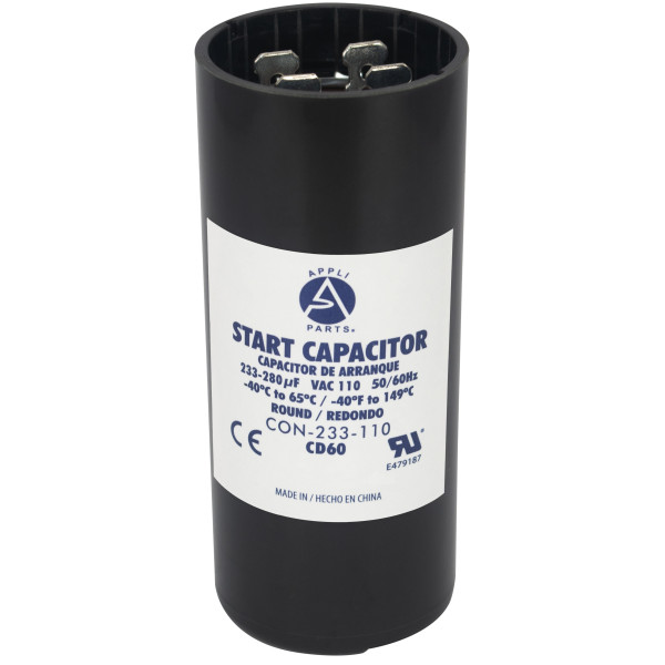 Appli Parts CON-233-110 Motor Start Capacitor 233-280 MFD uF, 110-125 VAC. Universal for Electric Motor Applications, 1.44 in Wide, 3.38 in Height