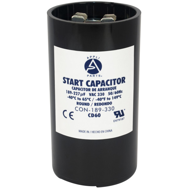 Appli Parts CON-189-330 Motor Start Capacitor 189-227 MFD uF, 330 VAC. Universal for Electric Motor Applications, 1.75 in Wide, 3.38 in Height