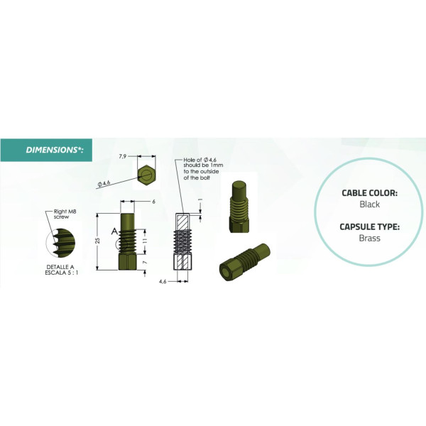 Full Gauge SB-28 NTC Temperature Sensor with Screw and 8.2 ft (2.5 m) cable for direct insertion into heating piping and solar panels, operating temperature -58 to 221 F (-50 to 105 C)