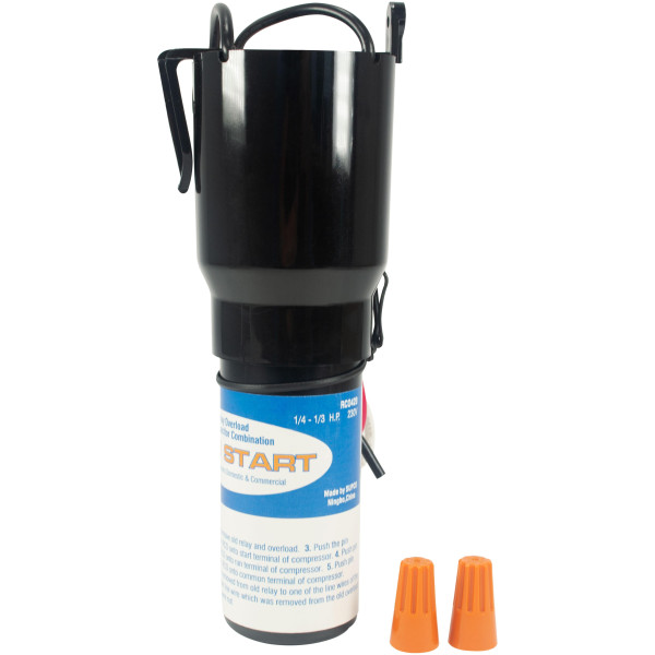 Supco RCO420 1/4 to 1/3 HP, 220 to 230 VAC, 3 in 1 Solid-state Hardstart Relay, includes relay, overload, and start capacitor. Used refrigeration systems with or without run capacitors