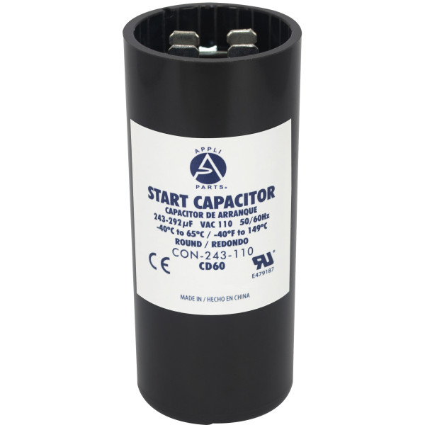 Appli Parts CON-243-110 Motor Start Capacitor 243-292 MFD uF, 110-125 VAC. Universal for Electric Motor Applications, 1.44 in Wide, 3.38 in Height