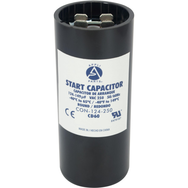 Appli Parts CON-124-250 Motor Start Capacitor 124-149 MFD uF, 250 VAC. Universal for Electric Motor Applications, 1.44 in Wide, 3.38 in Height