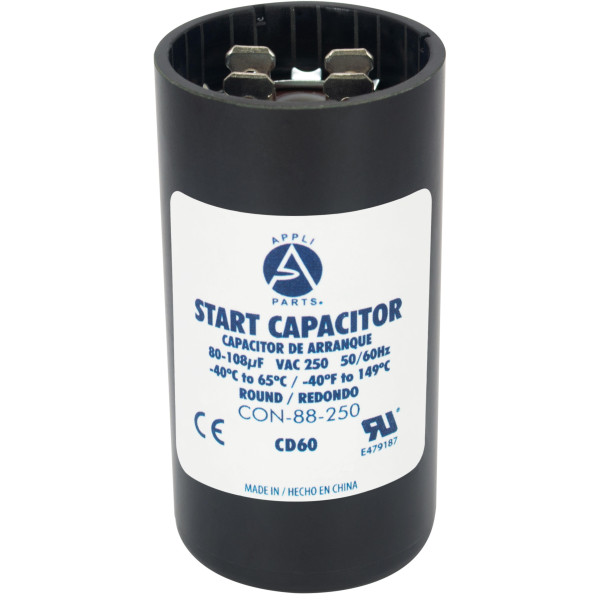 Appli Parts CON-88-250 Motor Start Capacitor 80-108 MFD uF, 250 VAC. Universal for Electric Motor Applications, 1.44 in Wide, 2.75 in Height
