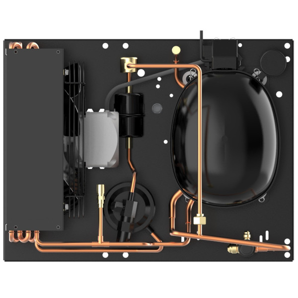 Features: Tubing bends to minimize vibration. Metal fan shroud and guard. Quiet, efficient compressor. Easy access service valves. Guard mounted motor