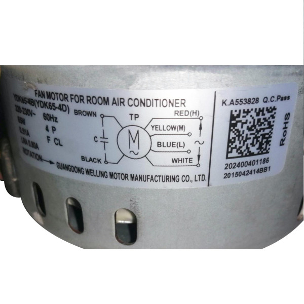 Fan Motor Indoor Unit Shaft 4in Long X 1/4in YDK65-4B (Ydk65-4d) KT-65-4-9 RoHS 220-230v 65w 0.51a Ccwse 202400401186 / 11002012002595 11002012030949 Fits: ecox EDDM030C16B EDDM036C16B