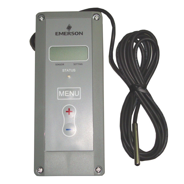 White Rodgers 16E09-101 digital thermostat with remote bulb for refrigeration, -40F to 220F, 24, 120, 208 and 240 VAC. Universal replacement for most single stage mechanical and electronic controls.