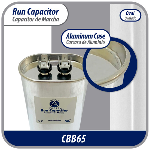 Appli Parts CON-30-370 Condensador Capacitor de Marcha 30 Mfd uF (microfaradios) 370VAC CBB65 Universal Aire acondicionado y otras aplicaciones Ovalado UL, 5.1cm Ancho 2.5cm Profundidad 7.6cm Alto