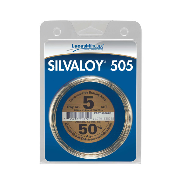 Soldadura de plata Lucas Milhaupt Silvaloy 505 50% 1/16in 1.6mm 5 oz 98072