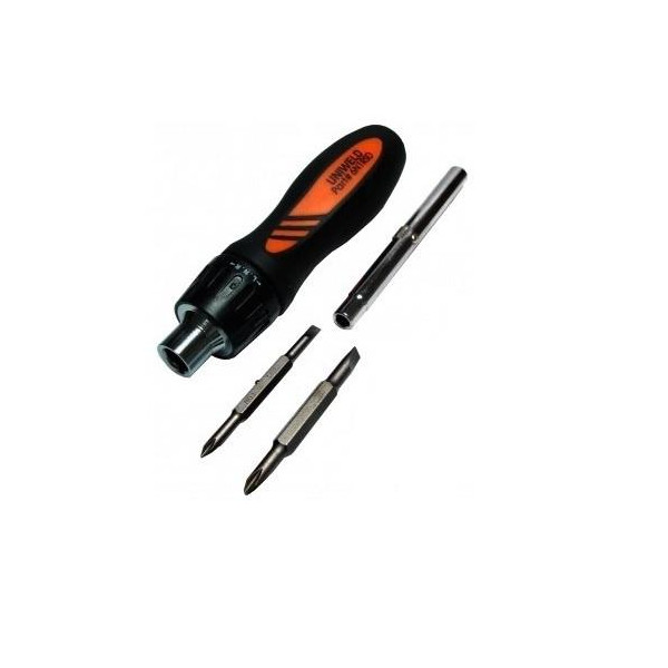 Uniweld 6N1RSD Destornillador Multiple 6 en 1 con Ratchet, 1/4 - 5/16 dado, 1/4 Nr 1 Plano Estria, 3/16 Nr 2 Plano Estria