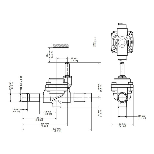 Danfoss 032L2201 Valvula Solenoide EVR 25, 1-1/8 pulg Soldable, ODF x ODF sin Stem Manual, NC